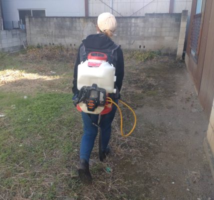 本日は高崎市倉賀野町の空き家で除草剤の散布を行いました。